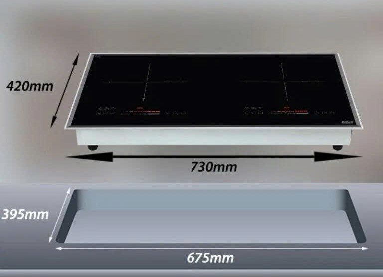 - Kiểu dáng hình chữ nhật nằm ngang 730 x 420 mm khá phổ biến, tương thích với mọi loại bàn bếp thông thường. Định vị chuẩn xác nơi đặt nồi đúng nhờ biểu thị vùng nấu trực quan bằng 2 dấu cộng lớn màu trắng bắt mắt.