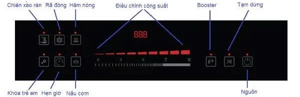 - Bảng điều khiển cảm ứng chạm siêu nhạy, mượt mà đến từng thao tác nhỏ, cho phép trượt kéo chọn 9 mức công suất nấu tùy ý. Các biểu tượng chức năng cũng rất sắc nét, rõ ràng.