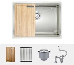 Chậu hạ bậc đa năng: Tích hợp thớt gỗ và rollmat tiện lợi.