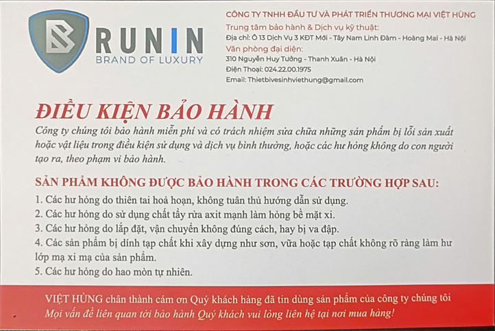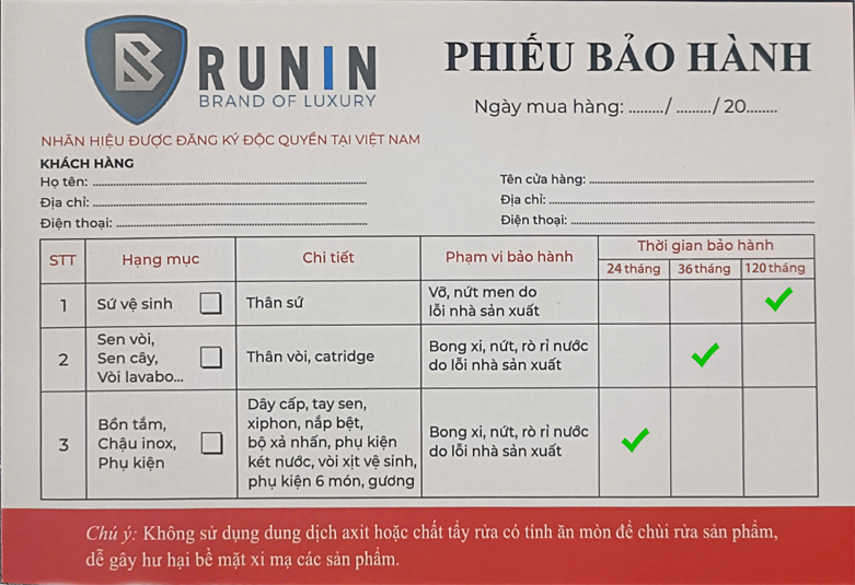 1. Đối với sản phẩm thuộc thương hiệu Brunin